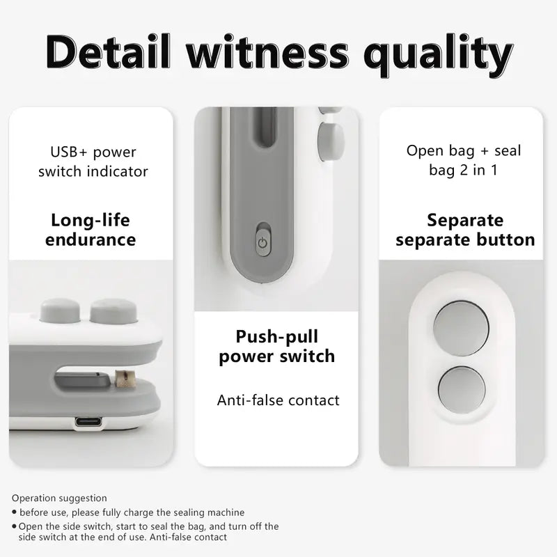 Tired of batteries? Our sealer is USB rechargeable, making it environmentally friendly and cost-effective. A single charge lasts up to a month of light daily use—perfect for travel, home kitchens, or even road trips.