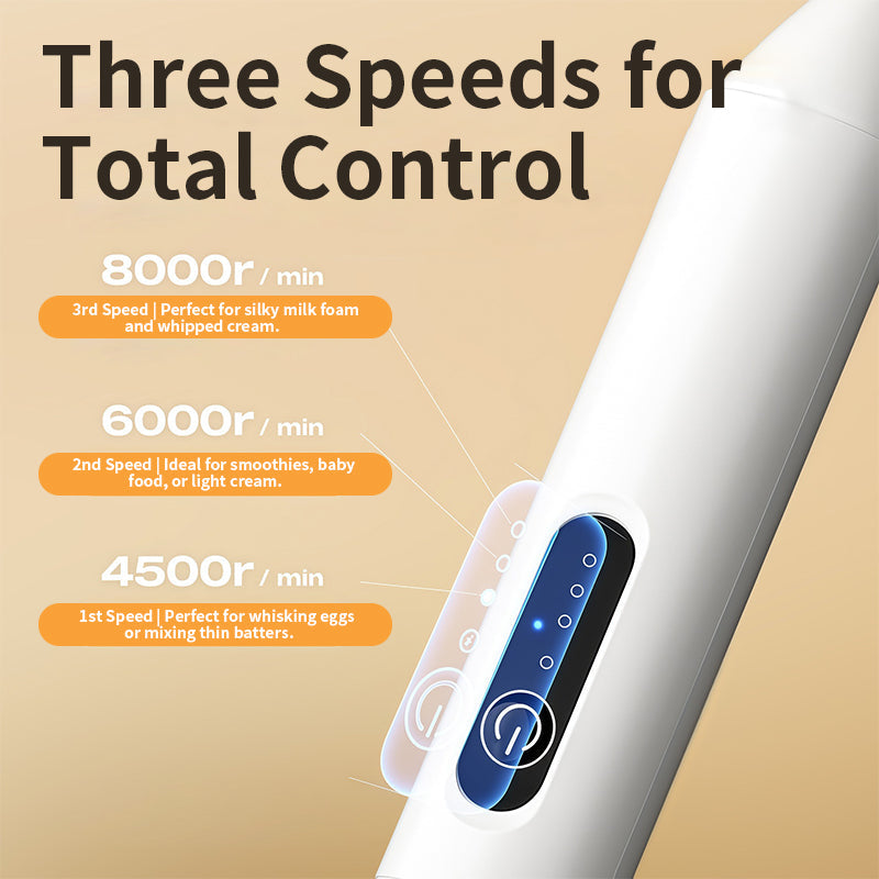 3rd Speed | 8,000 RPM: Perfect for silky milk foam and whipped cream.