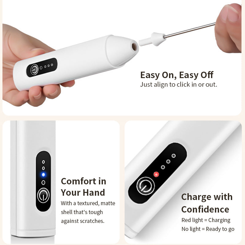 That first sip of coffee, crowned with silky foam, powers your day. Meet the QIAWI™ Rechargeable Handheld Frother. Designed with a quiet yet powerful motor and three-speed control, it creates velvety froth for your latte, blends matcha smoothly, or whips eggs fluffy all in seconds. The wireless design and Type-C charging keep it running. Now, just enjoy the foam.